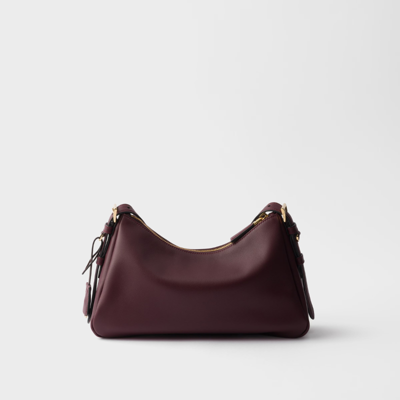 Prada 秋冬系列广告大片中的全新 Aimée 手袋散发着精致优雅的气息,其设计灵感源自 20 世纪 90 年代的极简主义美学。柔和的廓形令人不由自主地想要手提,同时也可轻松肩背或斜挎。