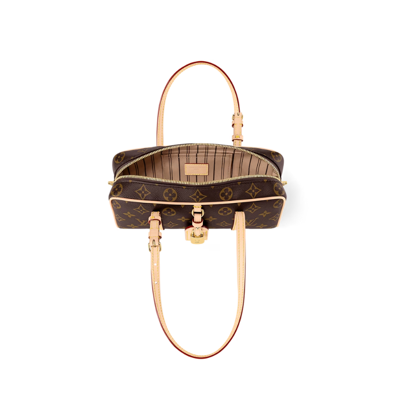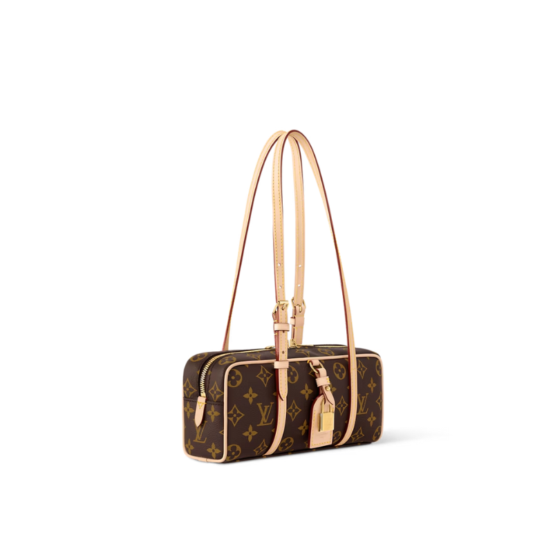 Design Inspiration: Reimagining the 1980s archival Cité bag, this contemporary bowling-shaped design blends vintage and modern elements. Featuring the iconic Monogram tag with a gold padlock, it offers elegant practicality for everyday shoulder or hand carry. Body: Monogram coated canvas (classic LV monogram pattern, durable and water-resistant) Trim: VVN calf leather (contrasting natural calf leather that develops a patina over time) Lining: Textile lining