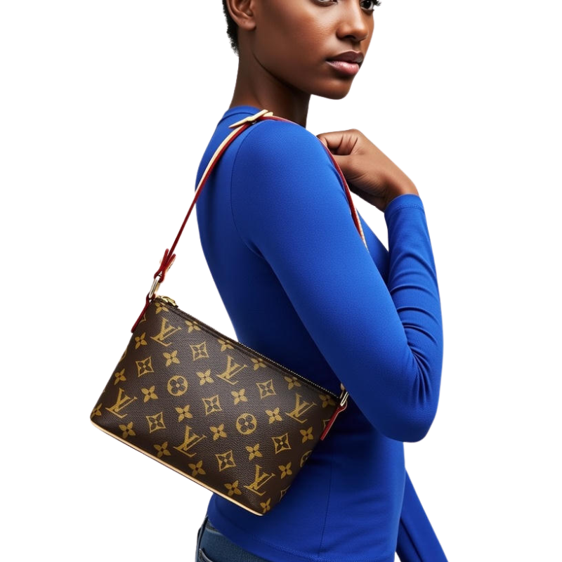 Nice BB 是路易威登经典化妆箱系列中的标志性单品,其设计灵感源自品牌早期的旅行化妆箱,完美融合了复古优雅与现代实用性。这款化妆箱采用标志性的 Monogram 涂层帆布制成,饰以天然小牛皮滚边和提手,顶部配有宽大的金色拉链,方便取用物品。它小巧精致却容量充足,既可作为专业化妆箱,也可作为百搭的日常手拿包/斜挎包,尽显低调的法式奢华。