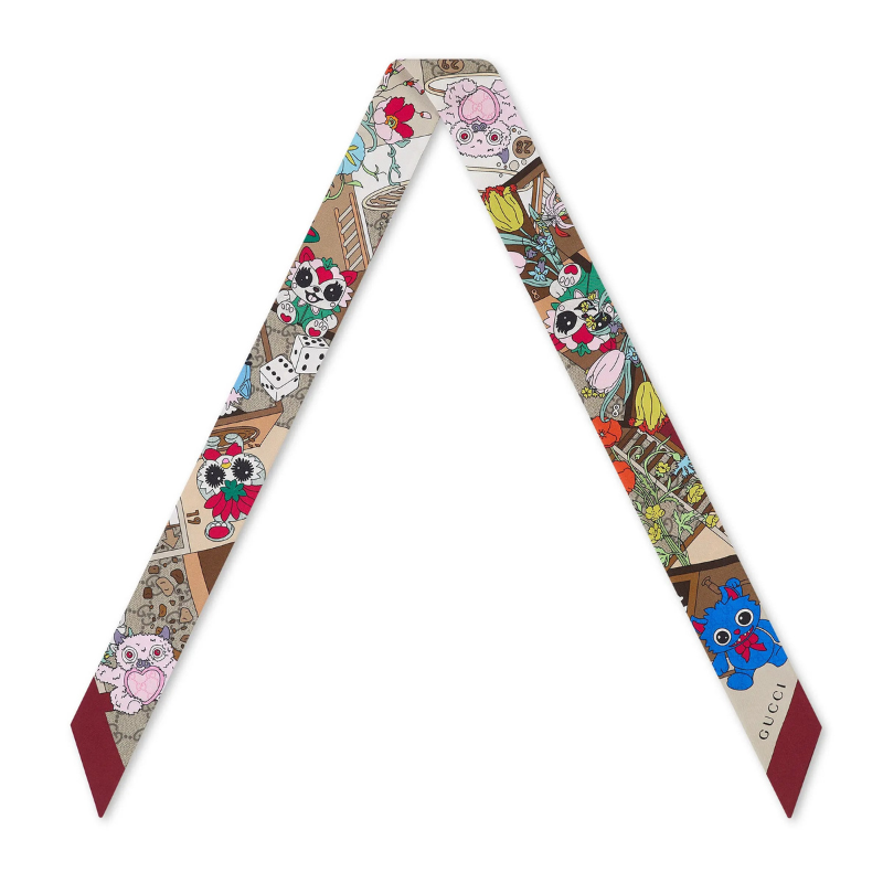 2026早春女装系列巧妙融合了品牌标志性的经典传承与90年代的奢华魅力。这款围巾采用GG羊毛面料,饰以精致的水晶细节和流苏边饰。