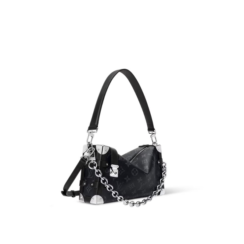 SIDE TRUNK EAST WEST Medium Handbag is an elegant box-shaped bag that blends the brand’s classic trunk elements with contemporary style, crafted from Monogram Eclipse coated canvas.