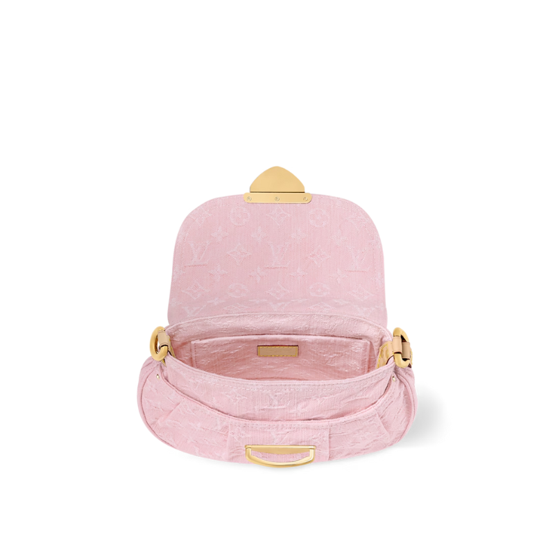 Design Inspiration: A seasonal update reviving the iconic 2005 Monogram Denim pattern. Features a unique bleaching process for a vintage washed effect, blending retro silhouettes with modern casual style. The signature tuck lock adds elegance, while rounded corners ensure versatile styling.