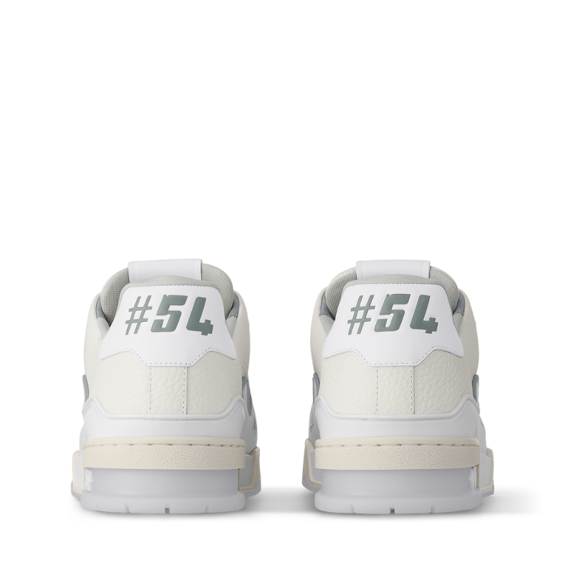 This LV Trainer sneaker features a monochromatic design combining smooth and grained calf leather. Inspired by vintage basketball shoes, this classic silhouette was designed by Artistic Director Virgil Abloh, with his signature Louis Vuitton logo adorning the side. The #54 emblem on the heel represents 1854, the year the brand was founded.