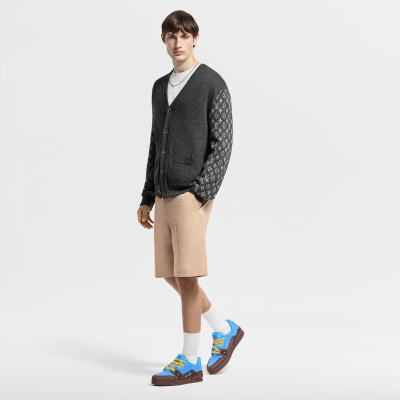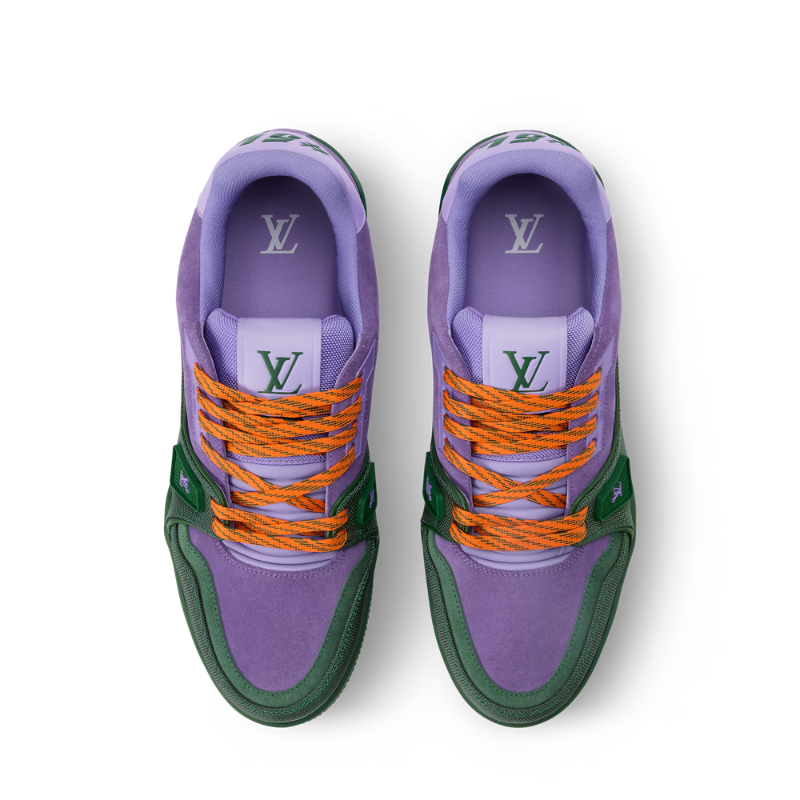 This seasonal edition of the LV Trainer sneaker is crafted from Monogram Tuffetage denim, echoing the 2025 Pre-Fall ready-to-wear collection. Contrasting rubber LV monogram and Louis Vuitton signatures, along with a two-tone rubber outsole, elevate this iconic silhouette. Originally designed by Virgil Abloh, the style draws inspiration from vintage basketball sneakers.
