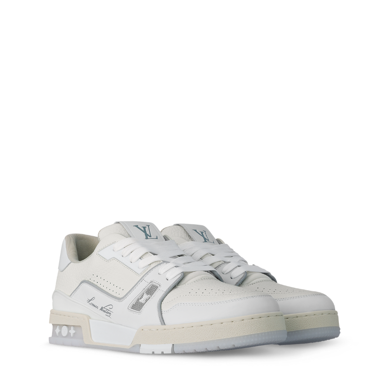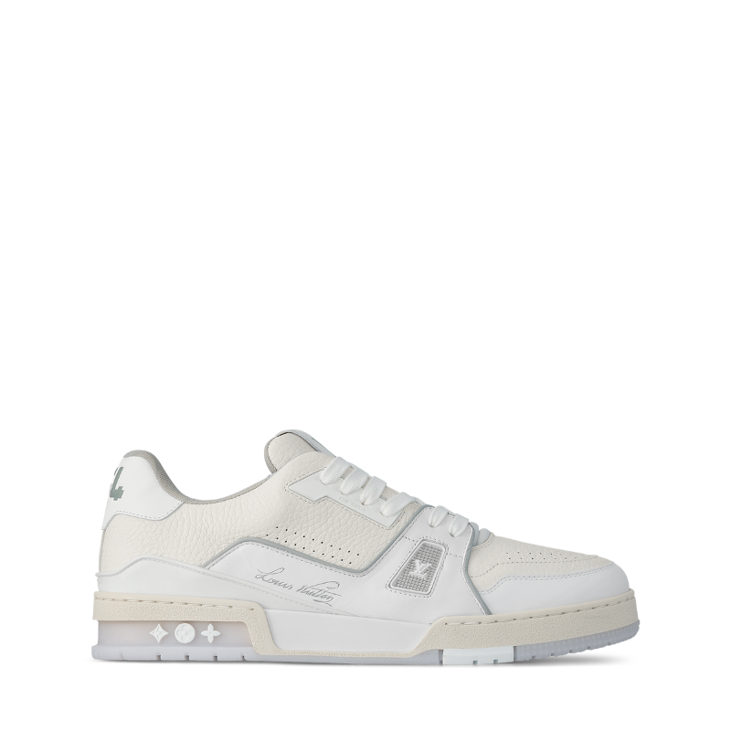 这款LV Trainer运动鞋采用粒面小牛皮制成,并饰以色彩缤纷的金属细节,包括LV字母标识。这款标志性鞋型最初由Virgil Abloh设计,鞋侧饰有他标志性的手写体Louis Vuitton字样。双色橡胶外底饰有Monogram花卉图案。