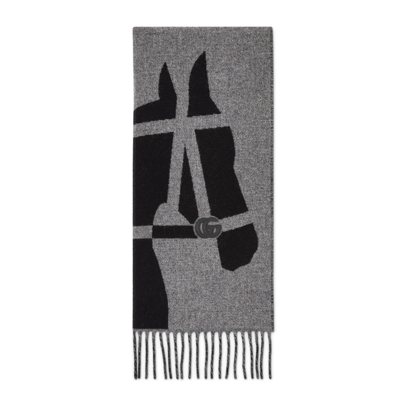 This double-faced jacquard wool scarf features exquisite fringe detailing and the brand’s iconic GG pattern, inspired by a 1970s archival design.