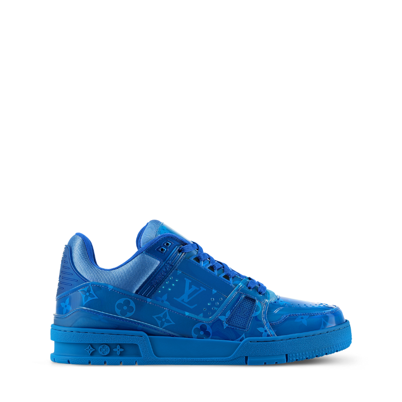 标志性的LV Trainer运动鞋以穿孔小牛皮重新演绎,其设计灵感源自大学运动队的醒目配色。这款设计融入了独特的品牌标识:鞋侧饰有大型Monogram花卉图案,鞋跟则采用不对称的Louis Vuitton双Logo,并配有饰有Monogram花卉的魔术贴搭扣。